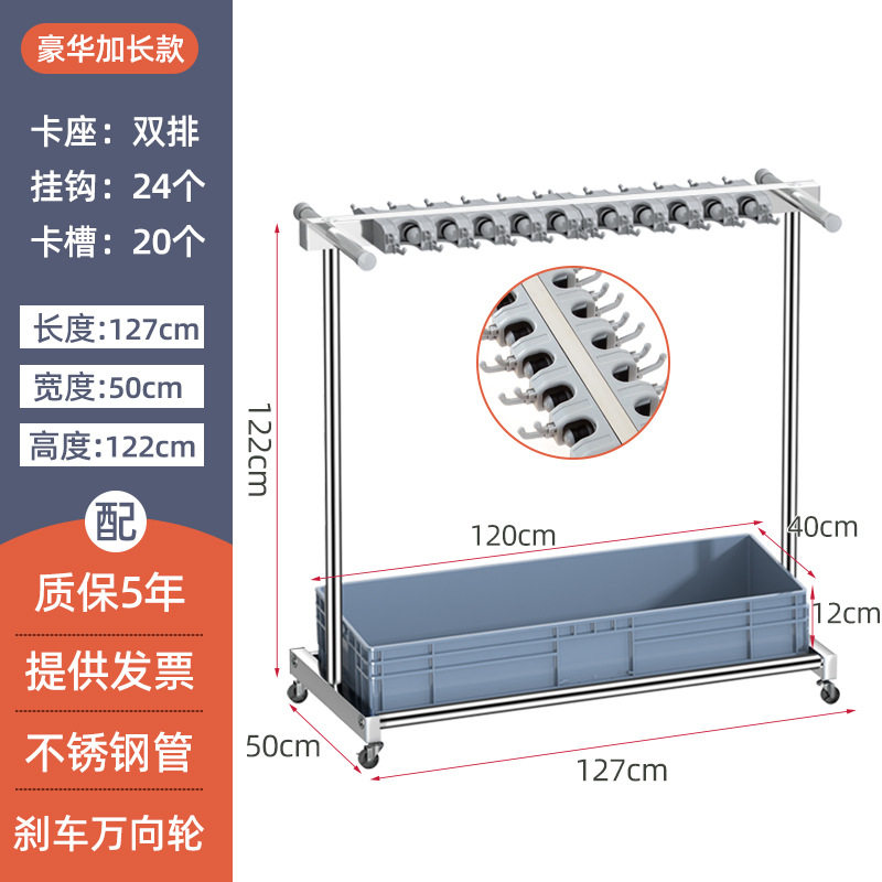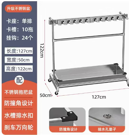 - Specification: 【Stainless Steel Mop Stand】Handle Model 127 Single Row 10 Trays 24 Hooks
