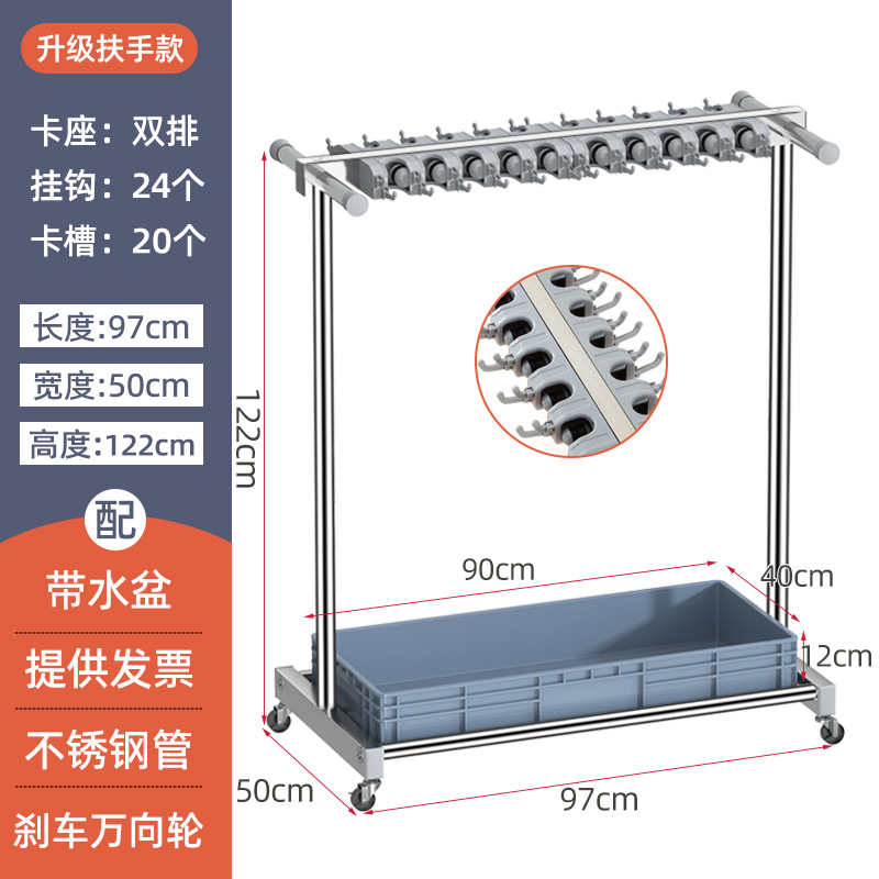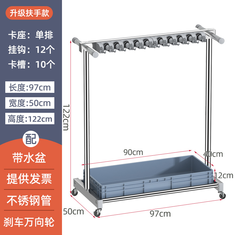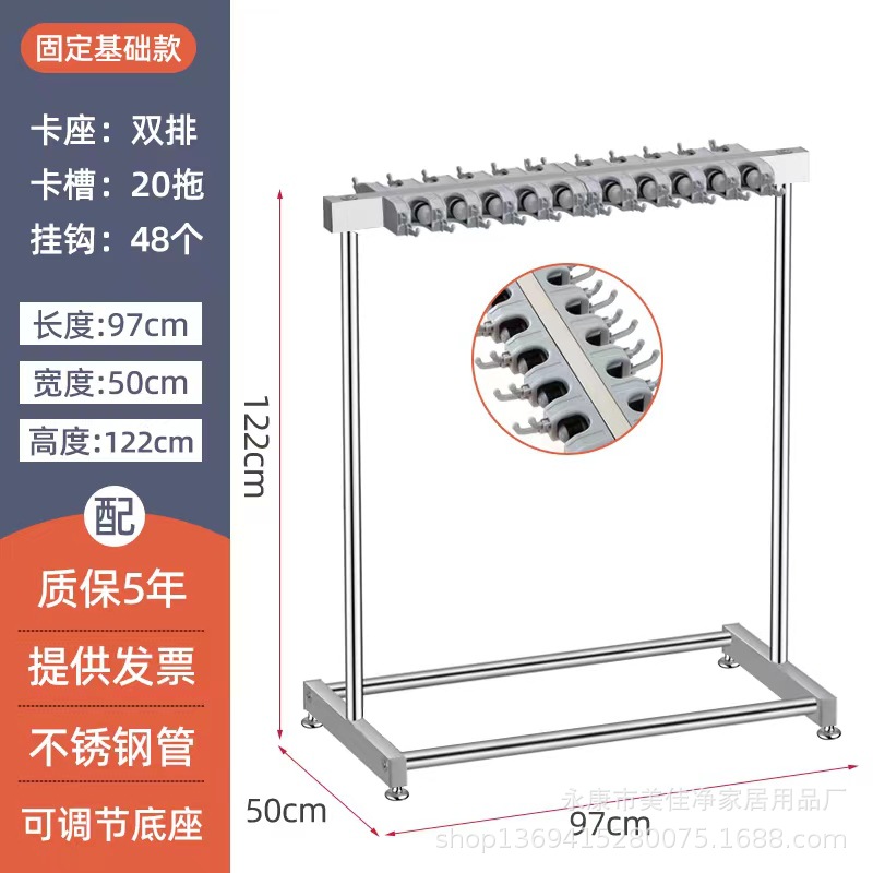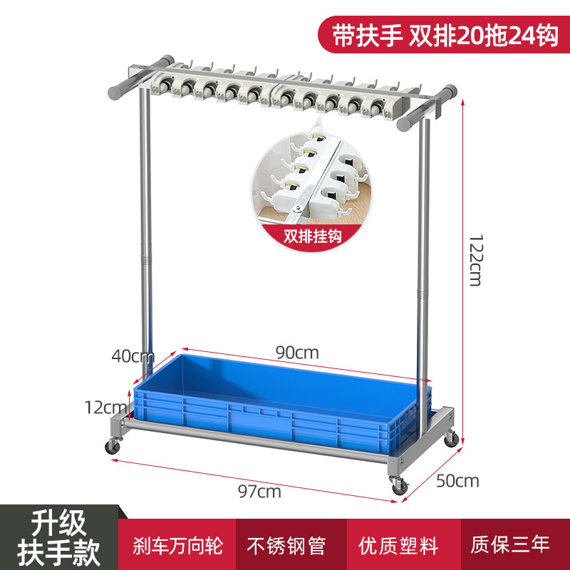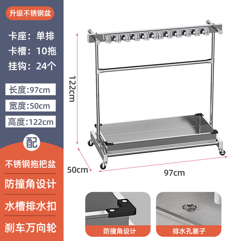 - Specification: 【Stainless Steel Mop Stand】Handle Model 97 Single Row 10 Trays 24 Hooks