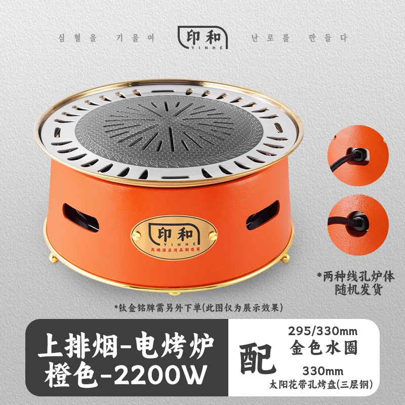 - Grill/pan specifications: Orange - Top exhaust electric grill (with 330MM three-layer steel sunflower with holes grill pan)