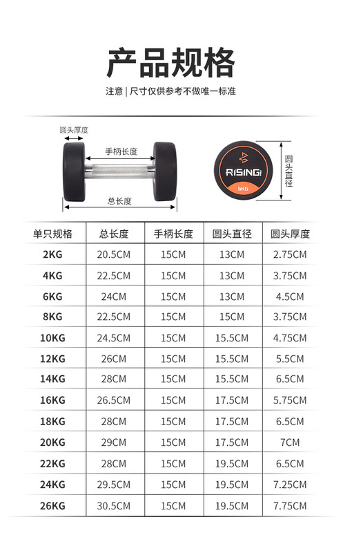 - 重量:銳思圓頭PU啞鈴26kg
