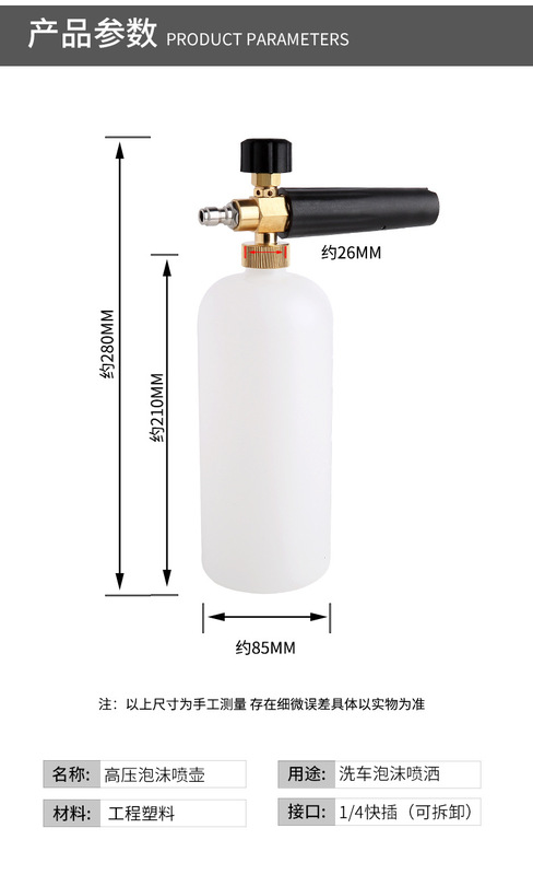 - Specification: G1/4 quick-connect foam壶