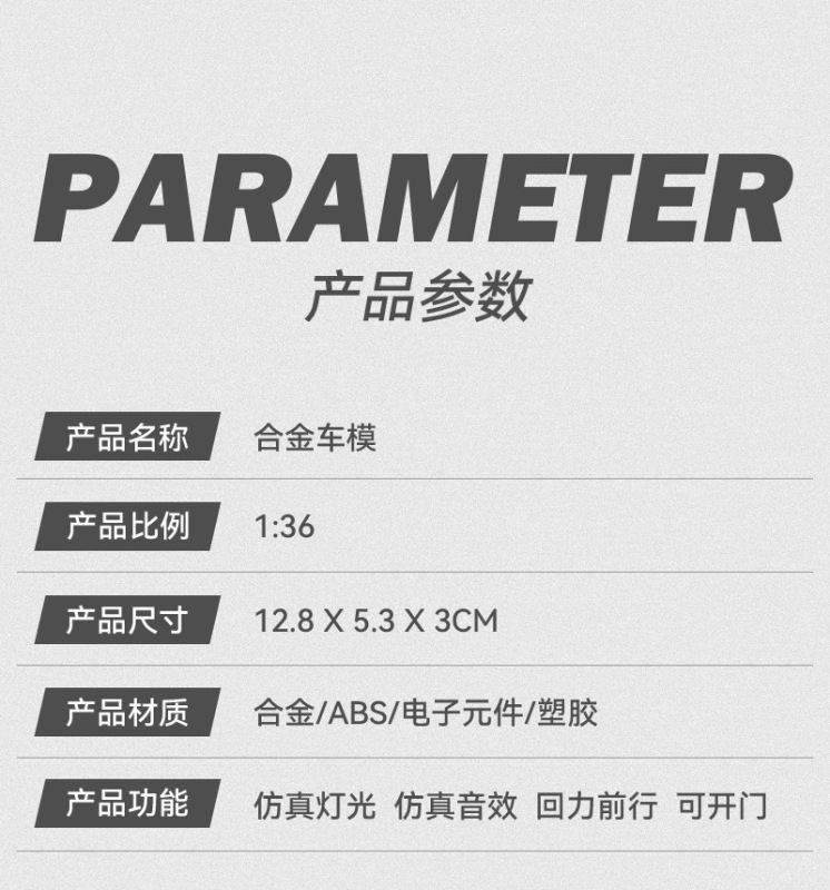 - Car model scale: 1:36
