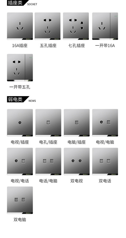 - Model:[Grey] Five-Hole Socket