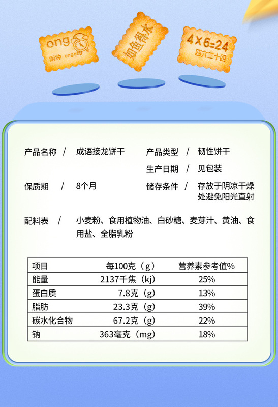 - Packaging Specification: Idiom Chain Cookies 37.5g*24 Bags
