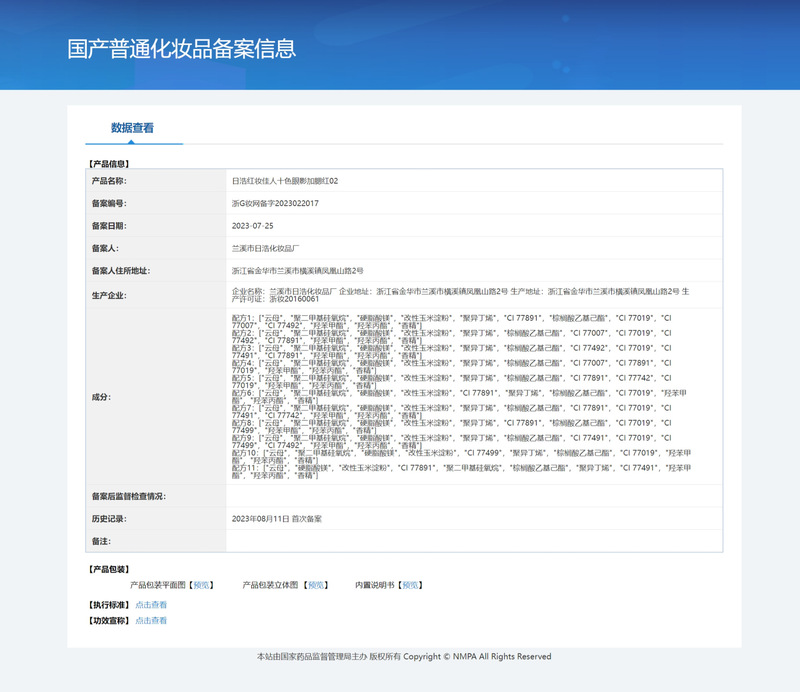 - 非特化妝品備案證號:浙G妝網備字2019000507