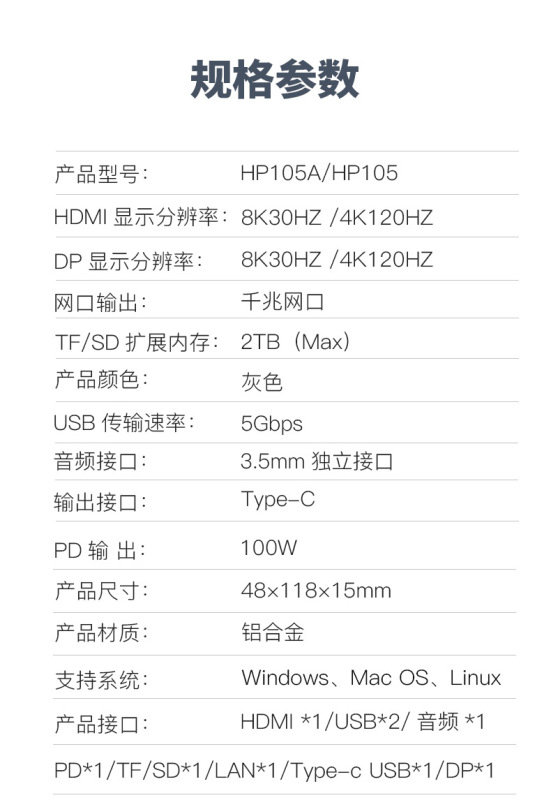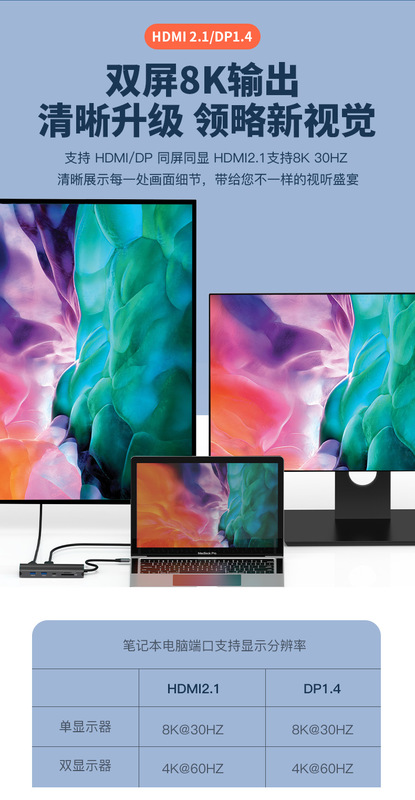 - Number of interfaces: 12-in-one (Dual DP + HDMI 8K display)