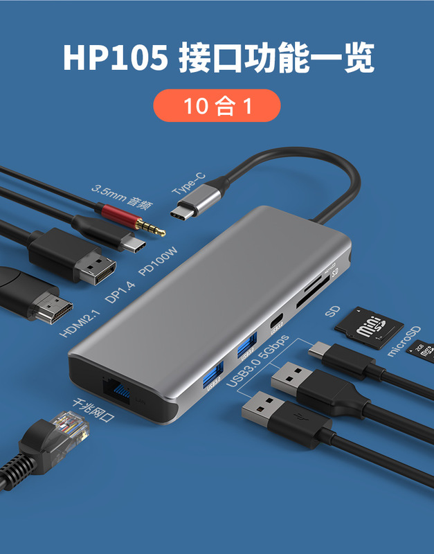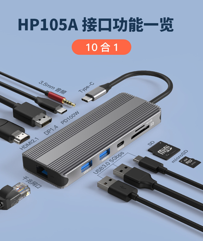 - Number of interfaces: Ten-in-one (Dual DP + HDMI 8K display)