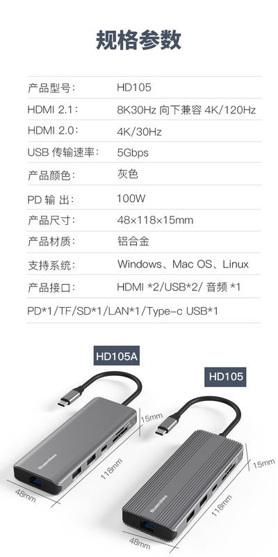 - Number of interfaces: 12-in-one (Dual HDMI 8K + 4K display)