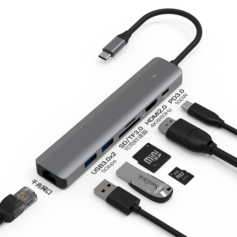- 接口數:七合一(4K60Hz+千兆網口+PD+USB3.0*2+SD/TF3.0同讀)