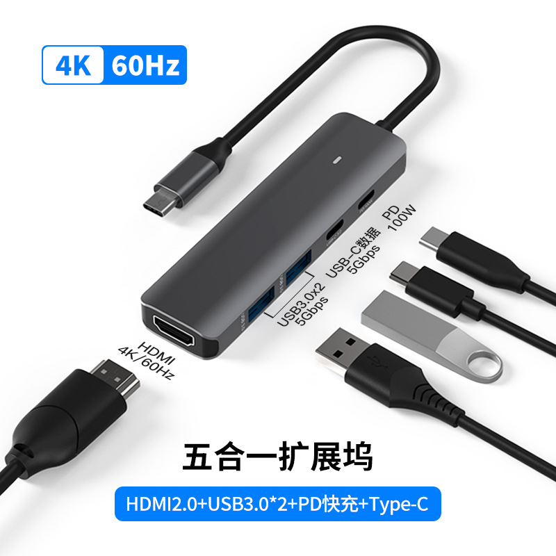 - 接口數:五合一(4K60Hz+PD+USB3.0*2+Type-C3.0)