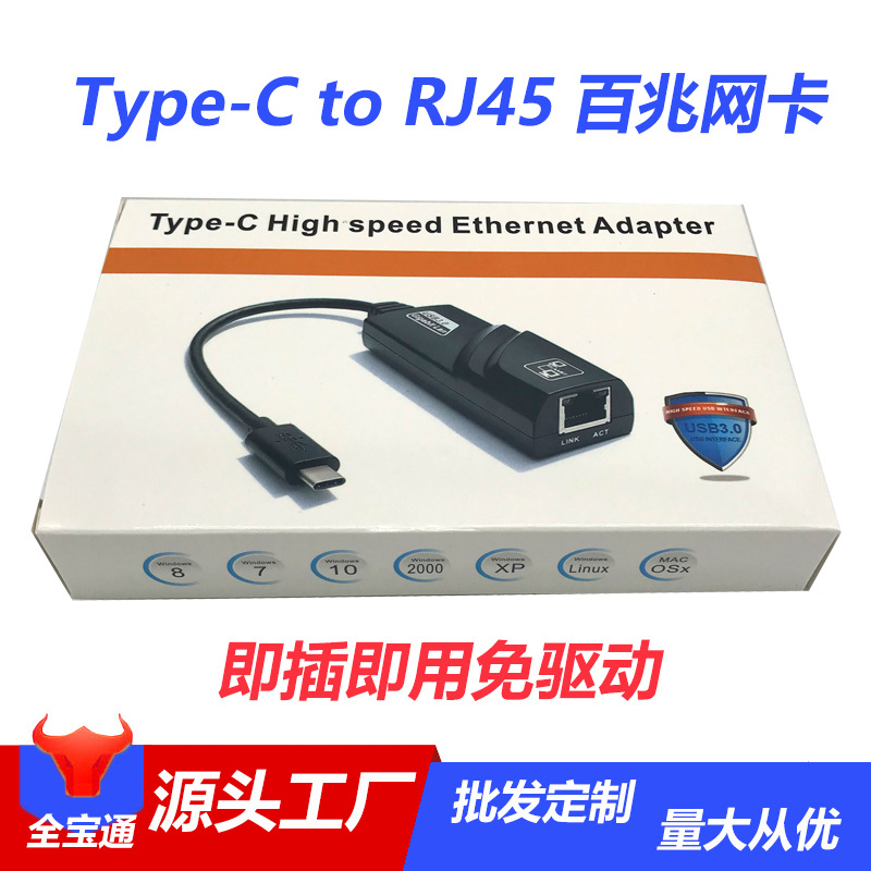 - Number of interfaces:Type-C to RJ45 100Mbps Ethernet (box)