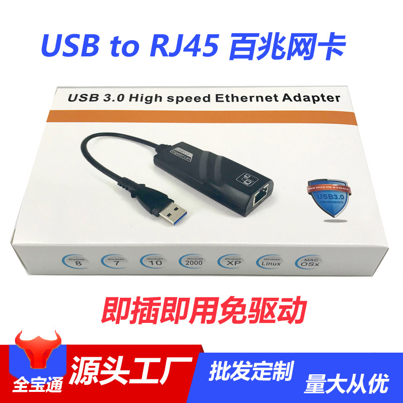 - Number of interfaces:USB to RJ45 100Mbps Ethernet (box)