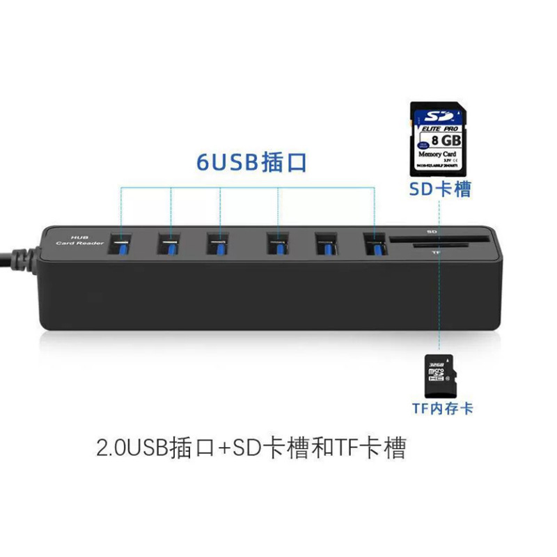 - Number of Interfaces: USB 2.0 6+2 Hub Combo Black (Bagged)