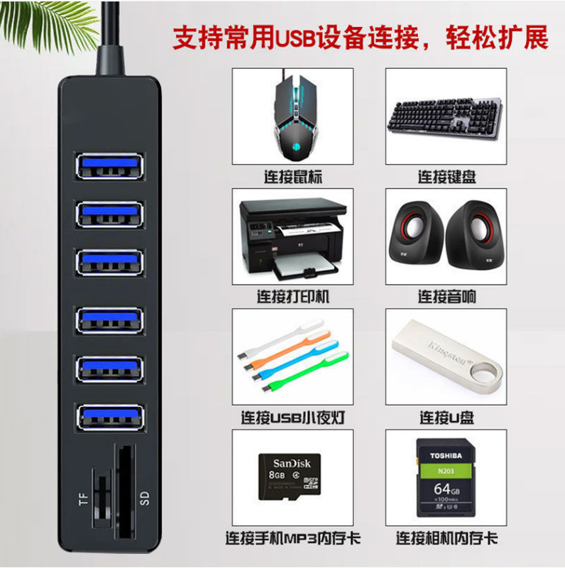 - Number of Interfaces: USB 2.0 7-Port Lighting Strip HUB (Bagged)
