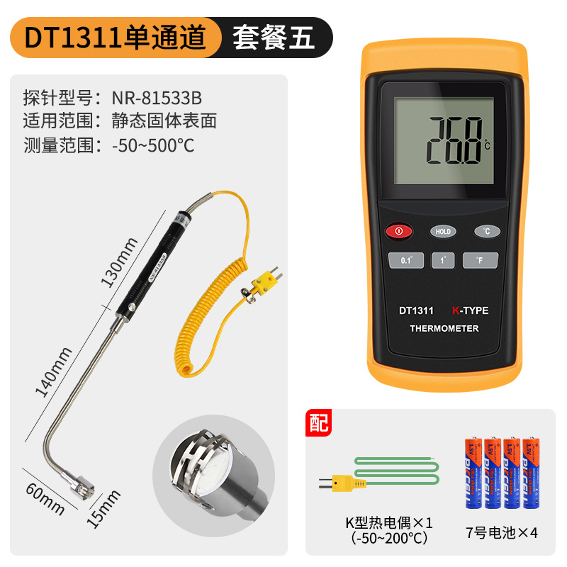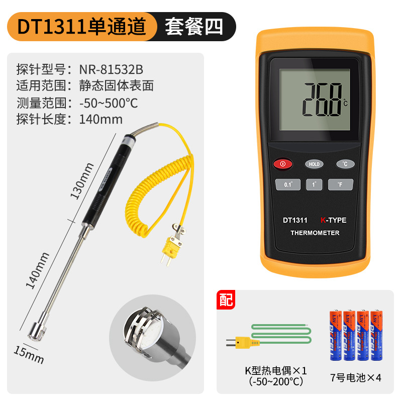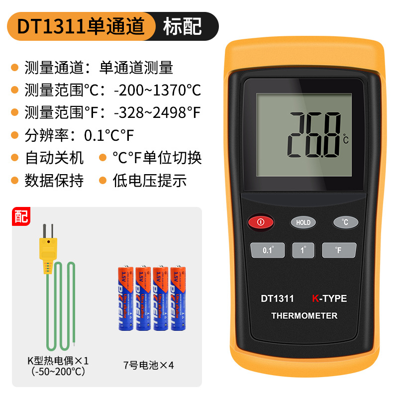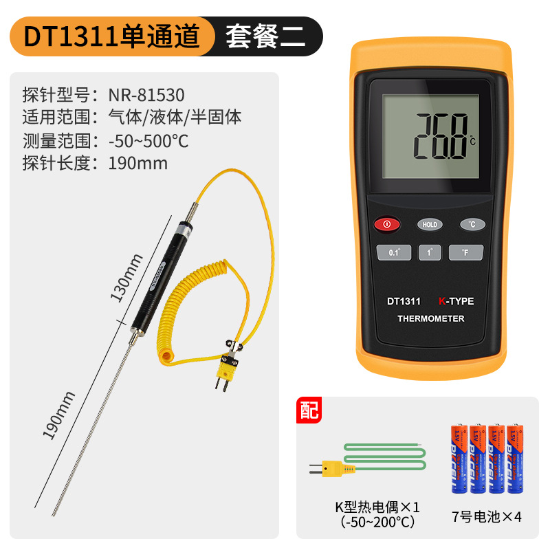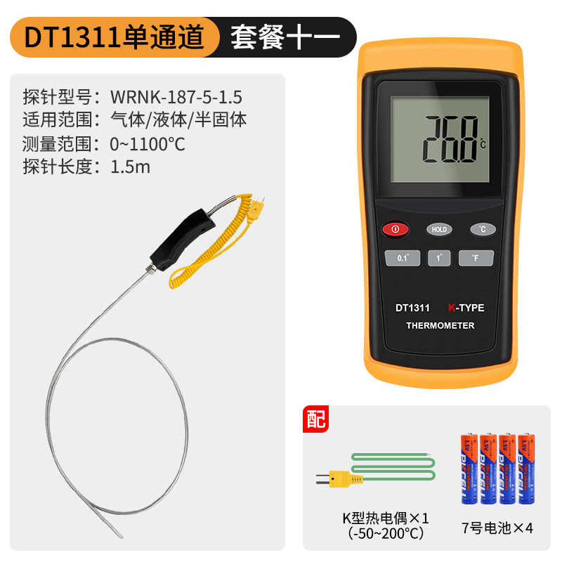 - Specification: DT1311 Single Channel + 0.5-meter High-Temperature Probe (0-1100℃)