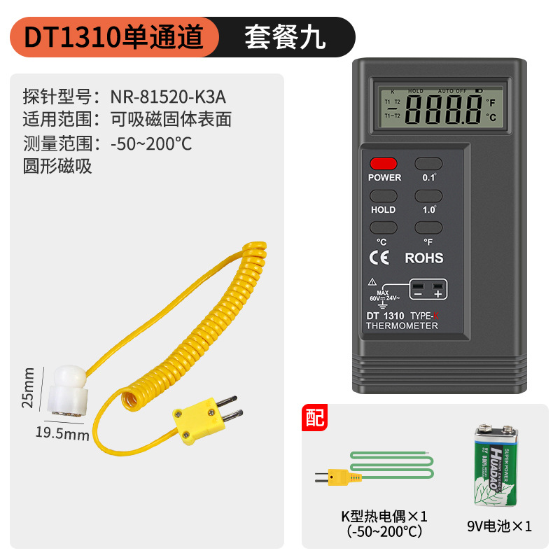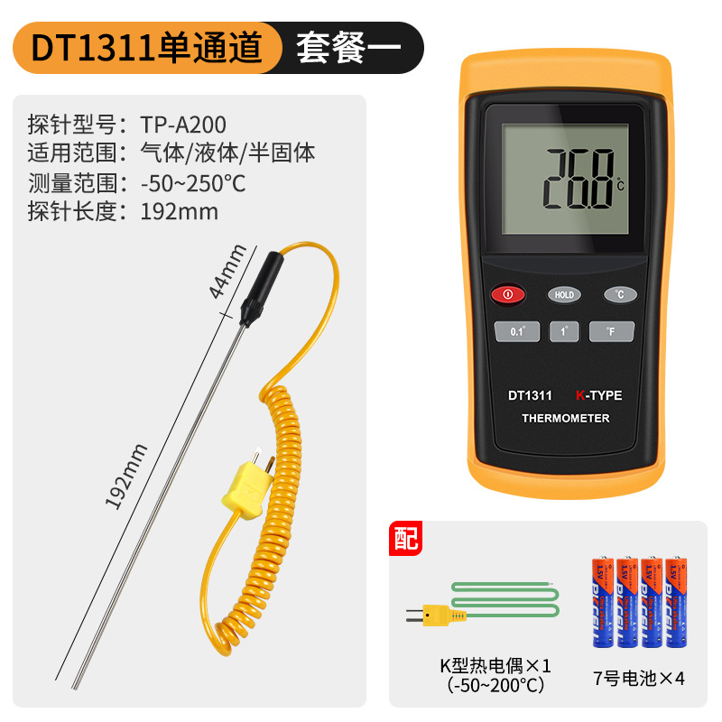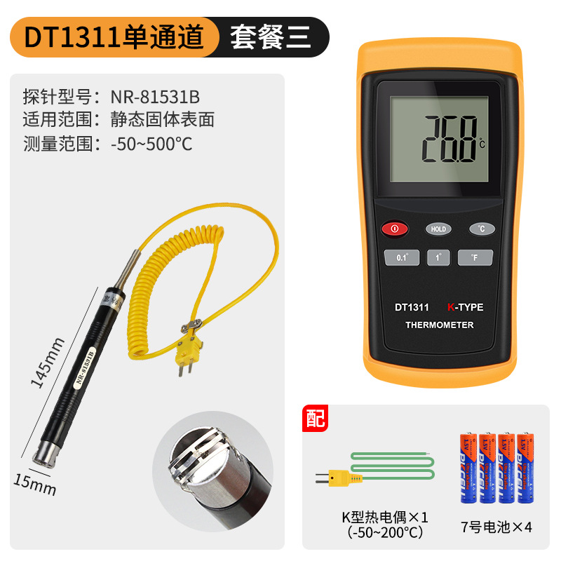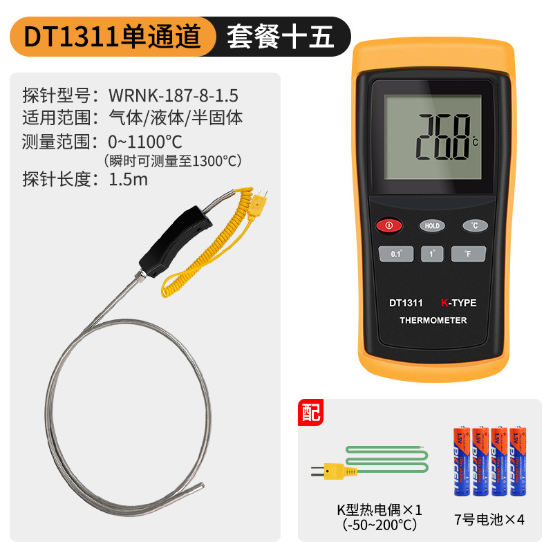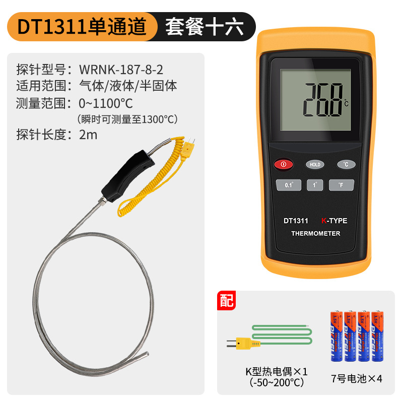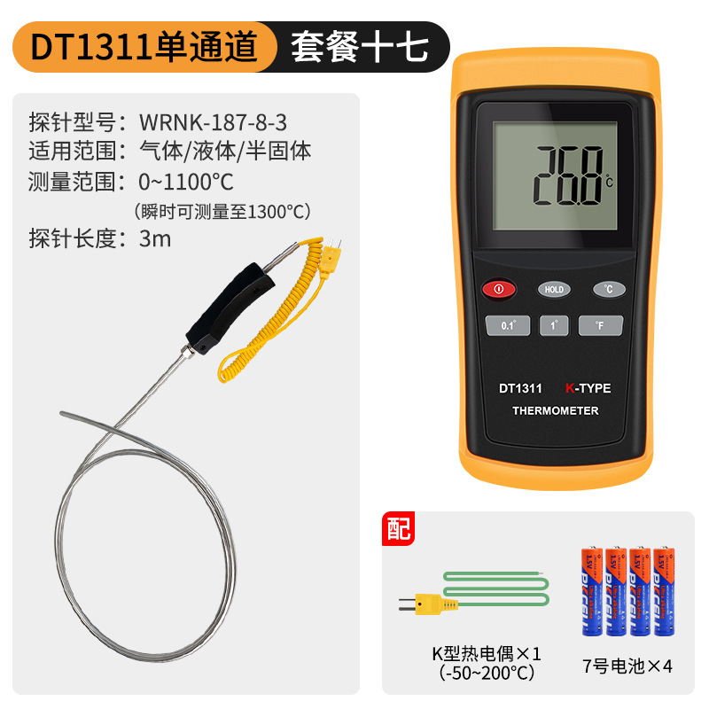 - Specification: DT1311 Single Channel + 0.5-meter High-Temperature Probe (0-1100℃)