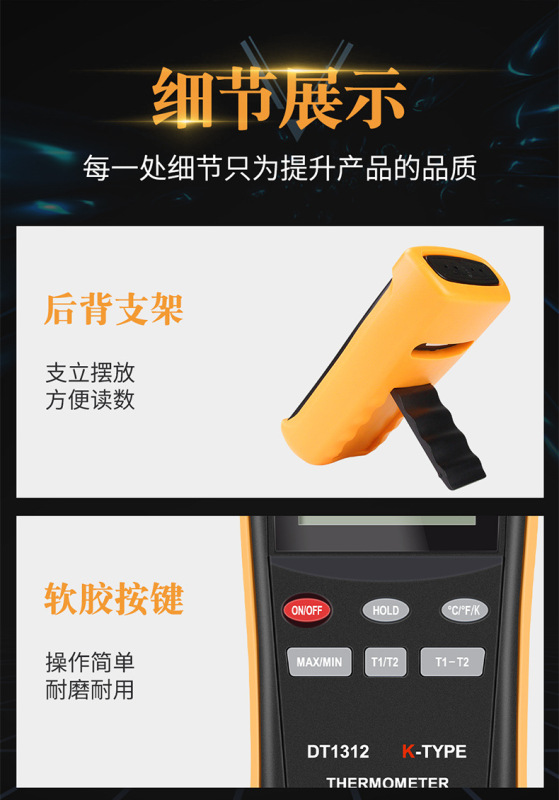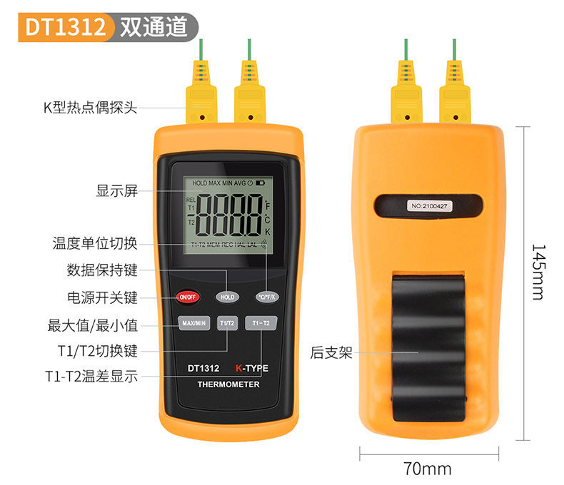 - Specification: DT1311 Single Channel + Steel-Aluminum Plate Probe (-50-1000℃)