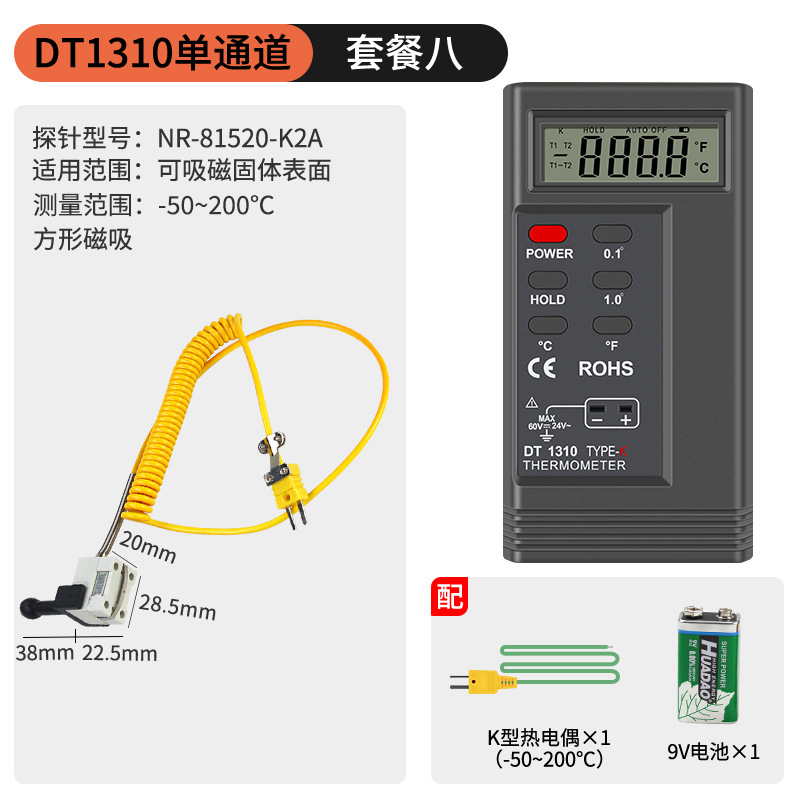 - Specification: DT1311 Single Channel + Square Magnetic Surface Probe (-50-200℃)