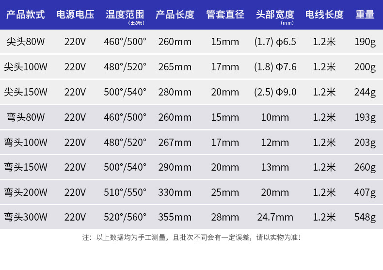 - 型號:100W尖頭(智能雙功率開關)標配