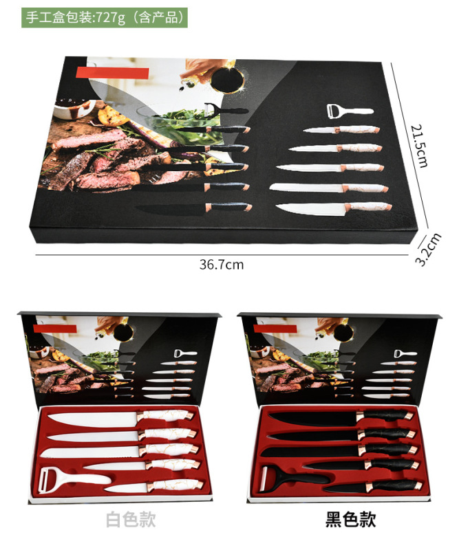 - Specification: Double Electroplated Head Marble Texture 6-Piece Set - Camel绒 Handmade Lid Box (Black Version)