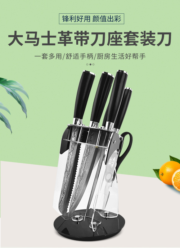 - 規格:大馬士革帶刀座套裝刀-斜座六件套