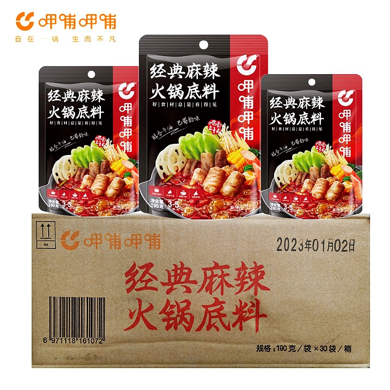 - Packaging Specification: Xiabu Classic Spicy Hot Pot Base Sauce 190g*30 Bags/Box