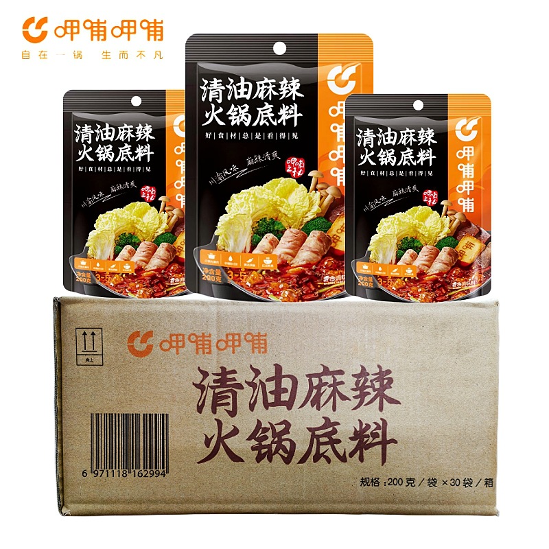 - Packaging Specification: Xiabu Pure Oil Spicy Hot Pot Base Sauce 200g*30 Bags/Box