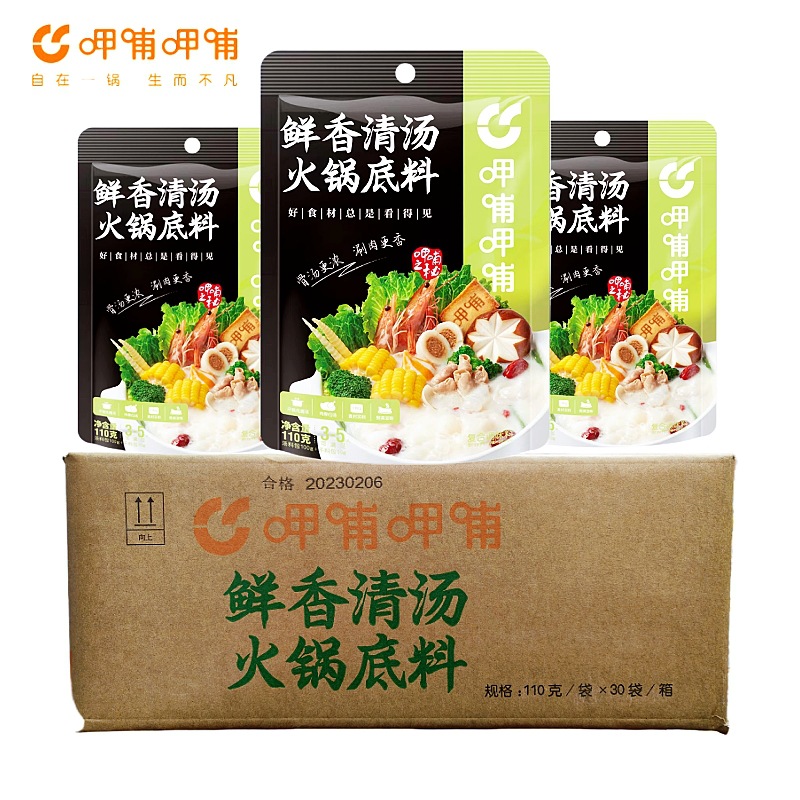 - Packaging Specification: Xiabu Fresh and Fragrant Clear Broth 110g*30 Bags/Box