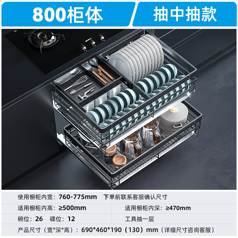 - 規格:【加深款】800櫃體實心304不鏽鋼雙層送2個接水盤【黑色】