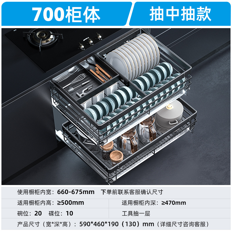 - 規格:【加深款】700櫃體實心304不鏽鋼雙層送2個接水盤【黑色】