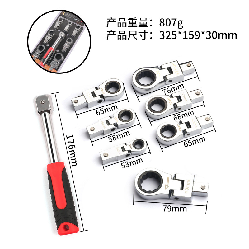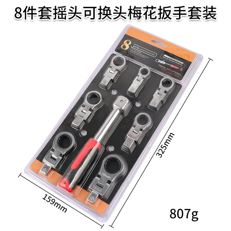 - 規格型號:8件套搖頭可換頭梅花扳手套裝