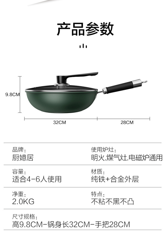 - 規格:墨綠不粘炒鍋32CM帶蓋