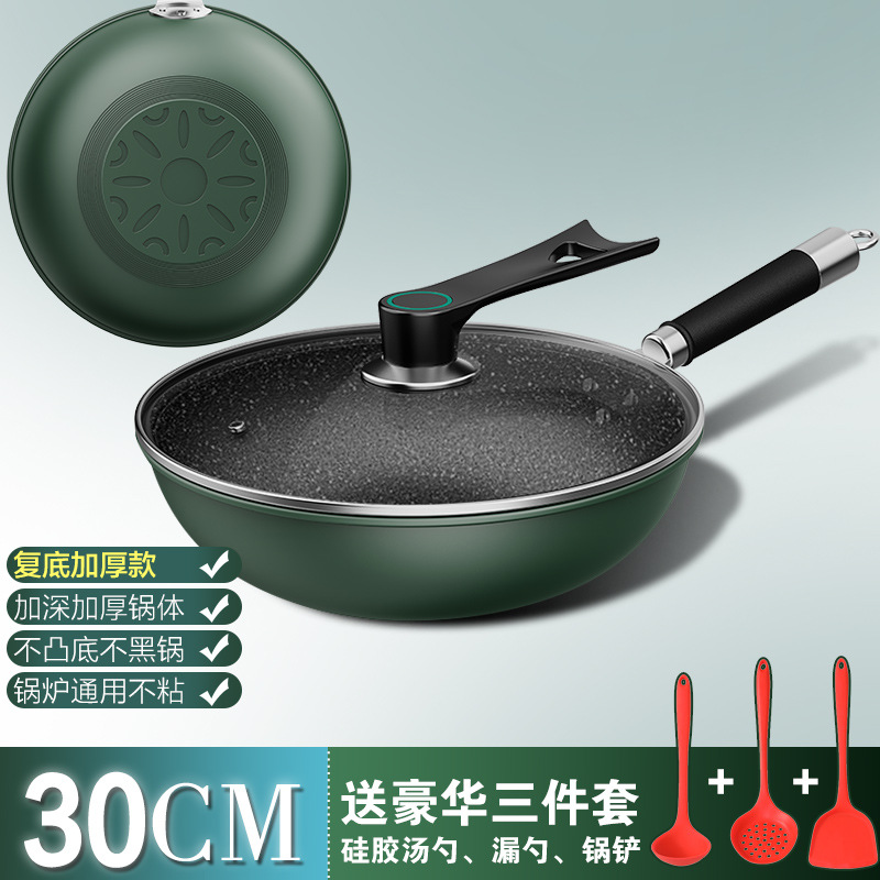 - 規格:墨綠蒸籠不粘炒鍋30CM帶蓋+硅膠三件套