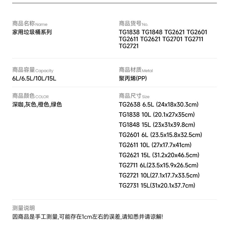 - Plastic New Material Ratio: 100% new material