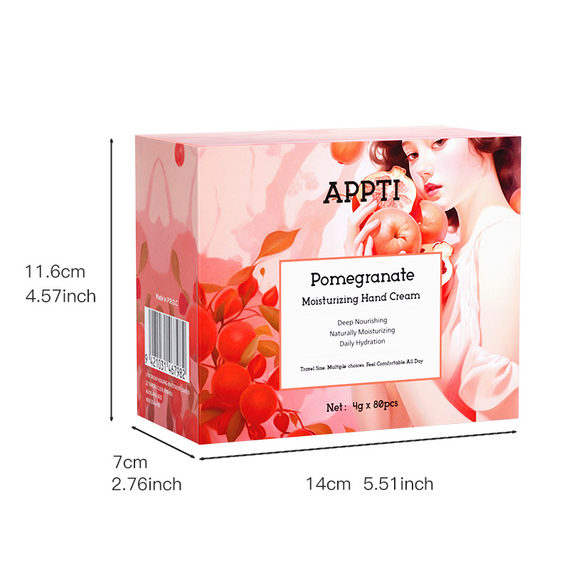- Product Specification: Pomegranate Hand Cream 4g*80 pcs/box