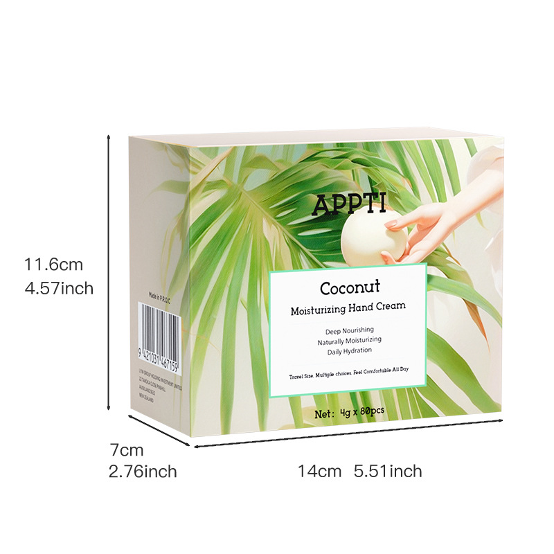 - Product Specification: Coconut Hand Cream 4g*80 pcs/box
