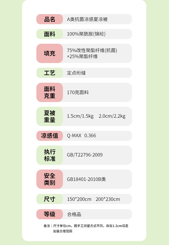 - 被子重量:2.5斤(不含)-3斤(含)