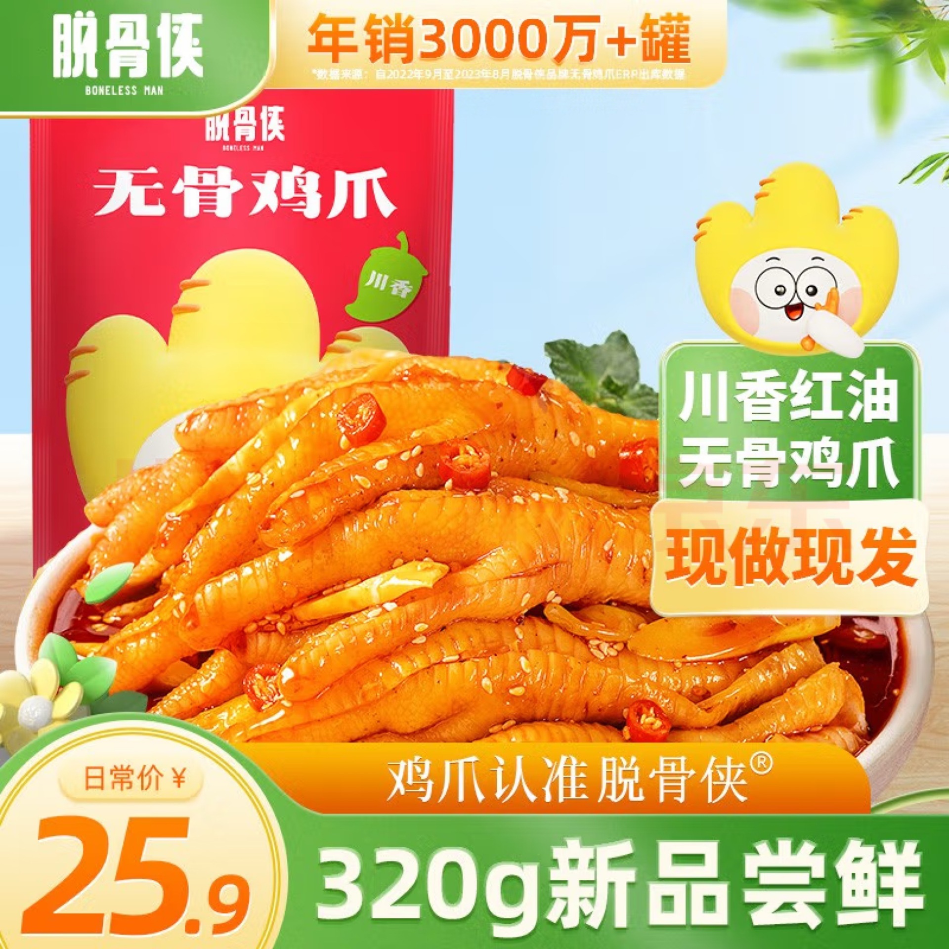 - 包裝規格:脫骨俠320g麻辣藤椒味(60%固形物)