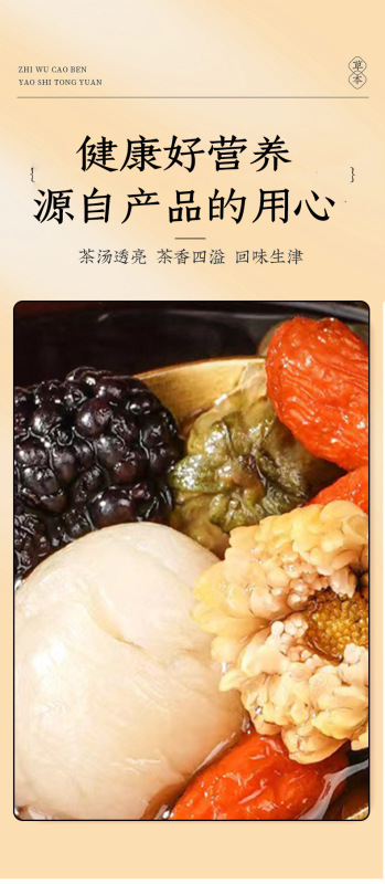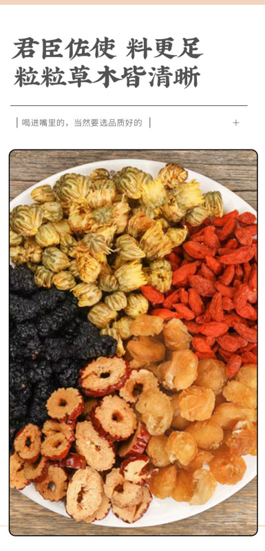 - Ingredients and Accessories: Mulberry, Goji Berry, Longan, Chrysanthemum, Jujube