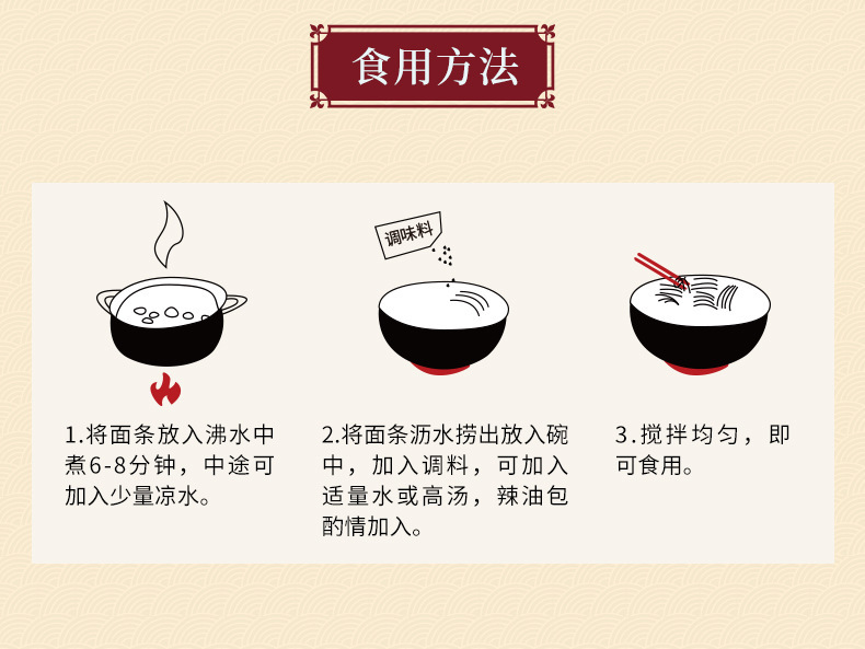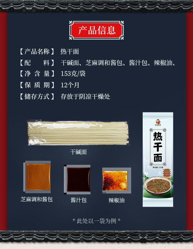 - Packaging Specification: One-person serving Hot Dry Noodles (3 types of seasonings)