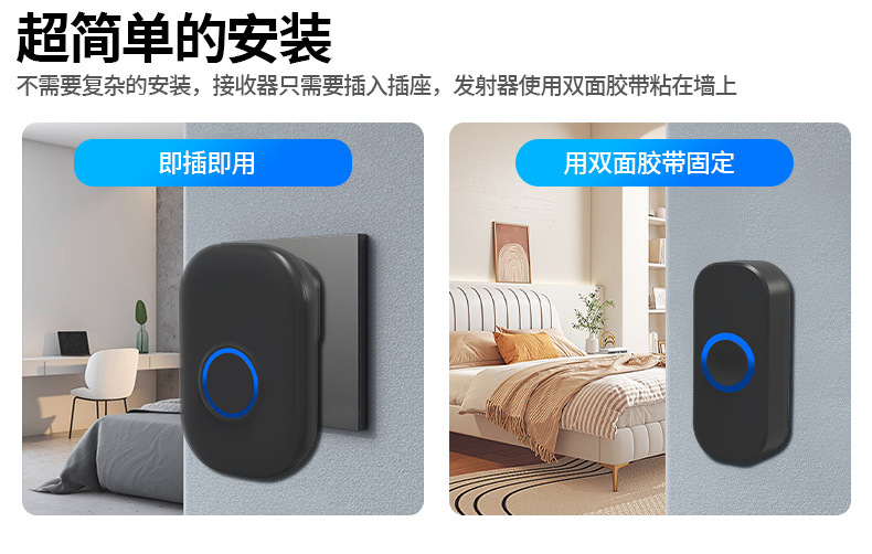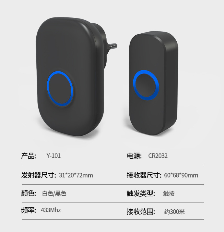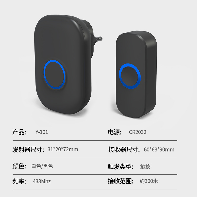 - Product Specifications: 1 Transmitter + 1 Chime (Black EU Plug)