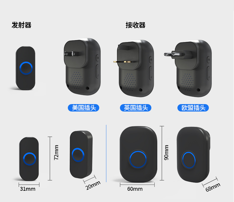 - Product Specifications: 1 Transmitter + 1 Chime (White Chinese Plug)