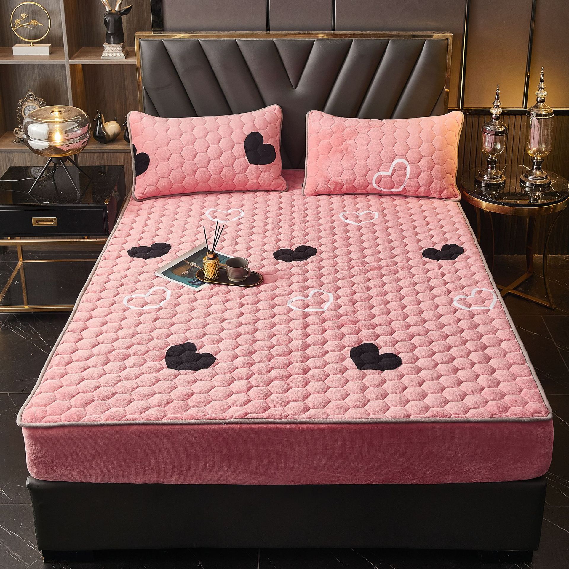 - 花型:心心相印【牛奶絨夾棉床笠】