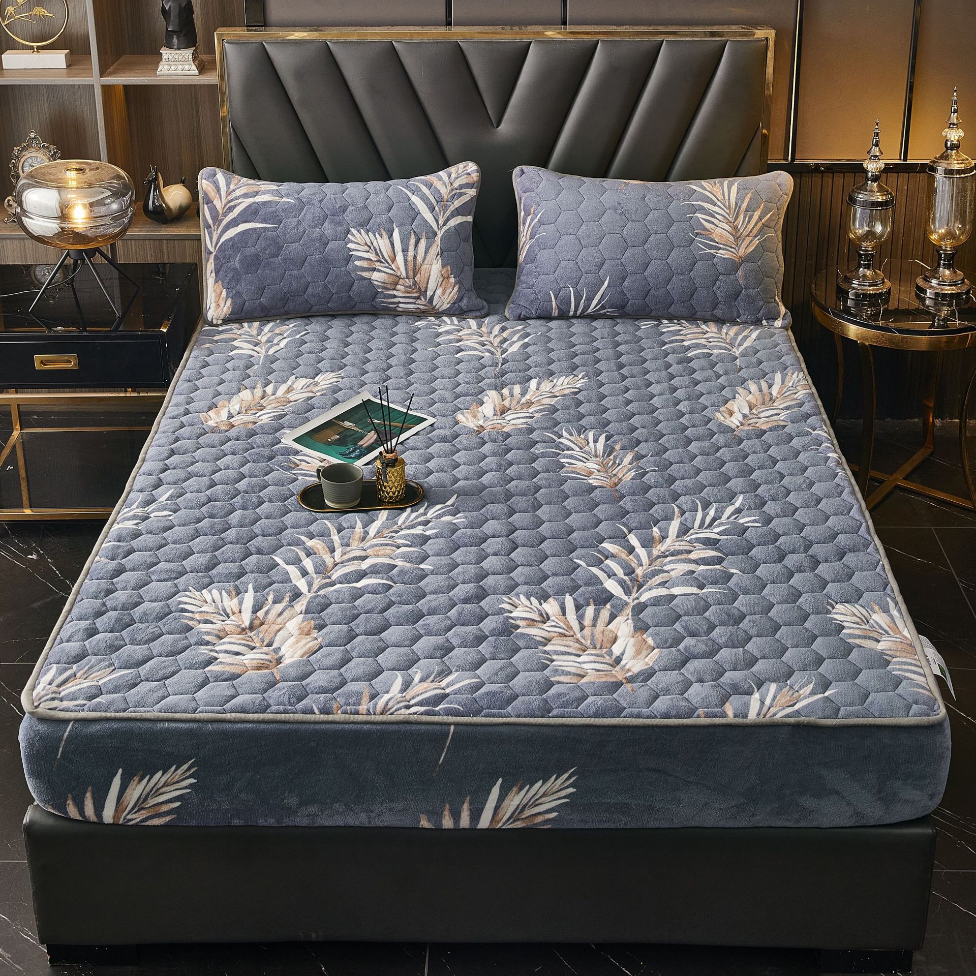 - 花型:棕櫚葉【牛奶絨夾棉床笠】
