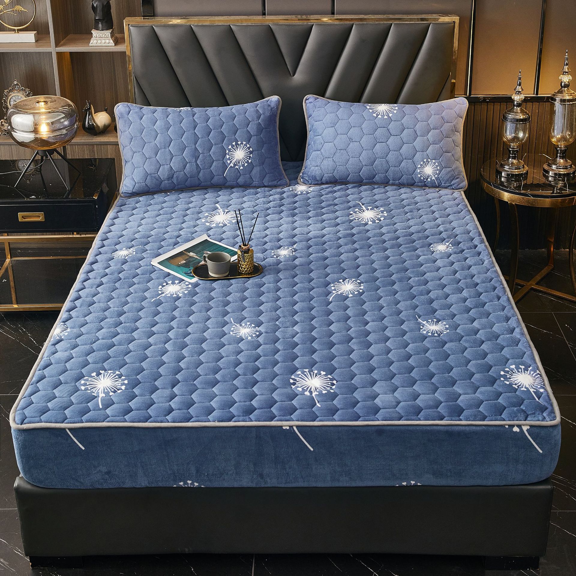 - 花型:寶石藍【牛奶絨夾棉床笠】