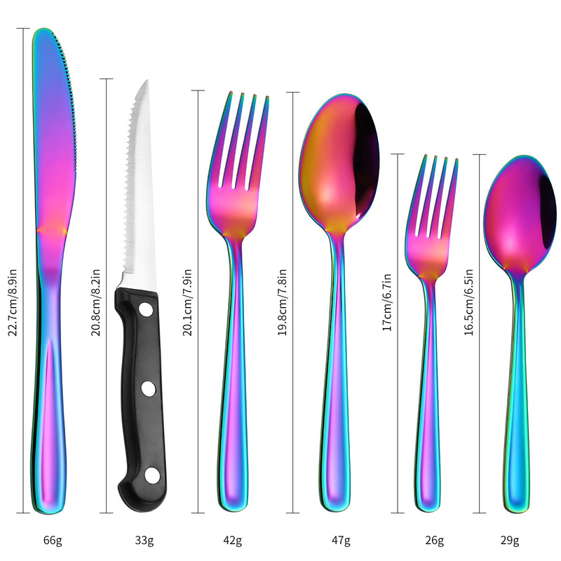 - 套裝清單:牛扒刀/餐刀/餐勺/餐叉/甜品勺/甜品叉x4