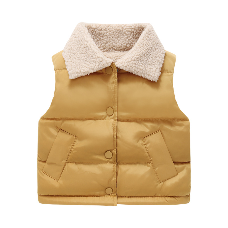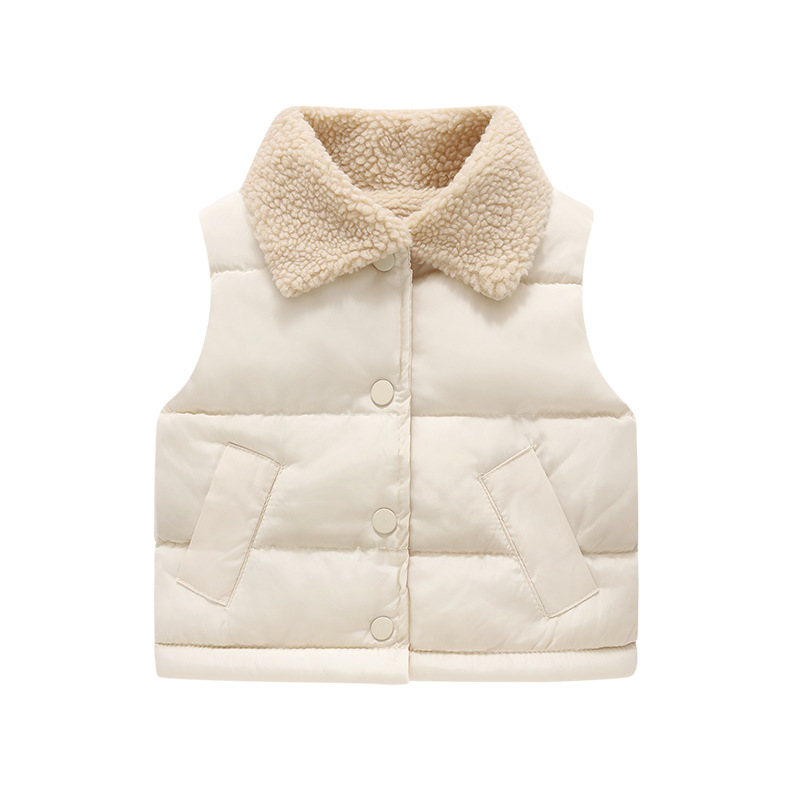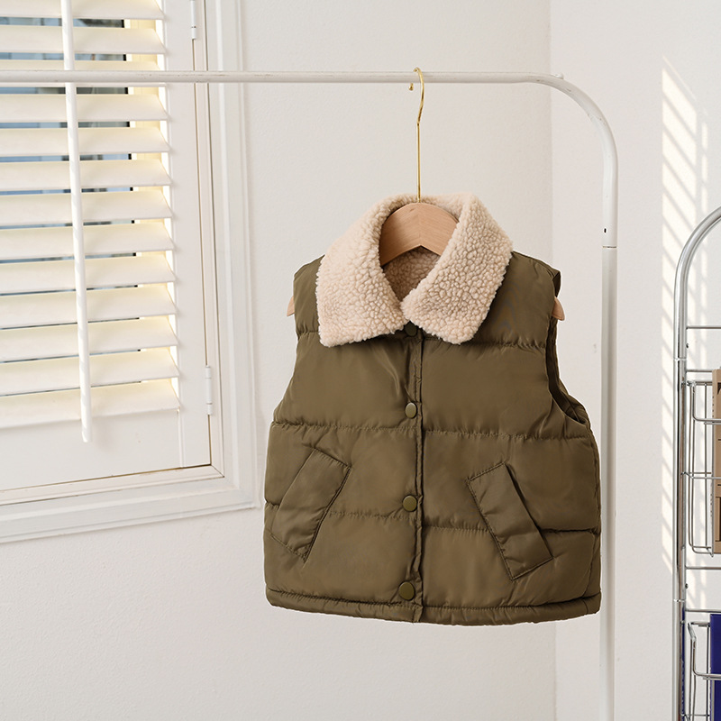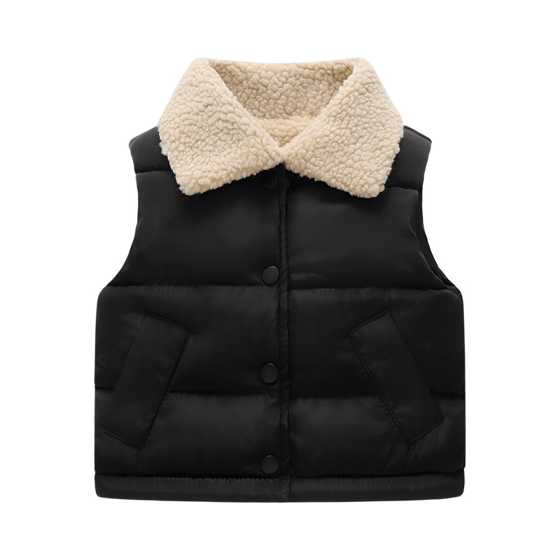 - Boys' and Girls' Winter Down and Cotton马甲: Autumn/Winter Boys' and Girls' Thickened Buttoned Cotton马甲 Children's Fleece Cardigan Backless马甲 Autumn/Winter Thickened Solid Color Girls' Backless马甲 Collared Down and Cotton马甲 Lamb Wool中小童