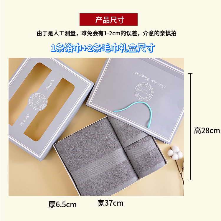 - 規格(長*寬cm):70*140浴巾+2條毛巾手提袋高檔禮盒