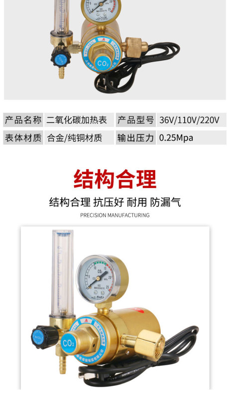 - Model: Full Copper Carbon Dioxide Pressure Regulator 36V