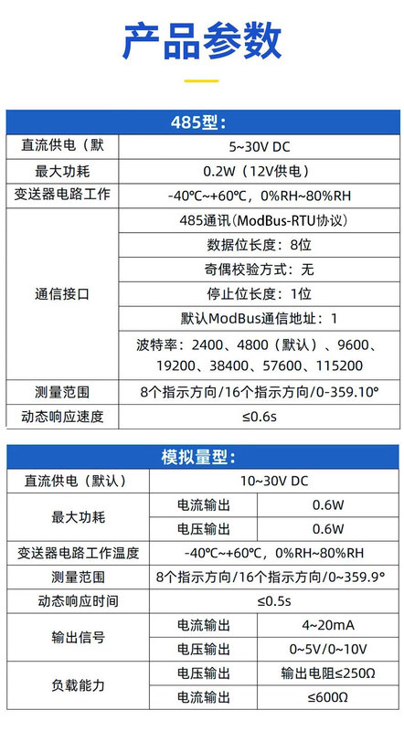 - Specification: New aluminum housing wind direction RS485360°